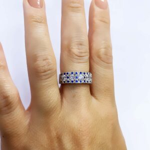 Anello Tempesta Blu Zirconia fascia in argento 925, con bagno galvanico di rodio in oro bianco, con zirconi di colore bianco e blu, incastonati con metodo bulino,misura 17 (disponibile, su richiesta, in tutte le misure).Tempi di lavorazione per articolo non disponibile 5/7gg.lavorativi.