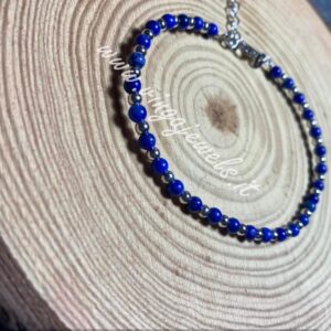 Bracciale con sfere alternate 4 mm Lapislazzuli Argento,anima interna bracciale totalmente in argento 925/1000 rodiato bianco misura interna 18 cm con catenaallungo circa 3 cm