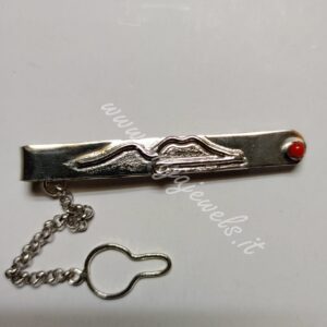 Fermacravatta in Argento 9256/1000 con rappresentazione del Vesuvio,rodiato bianco con corallo