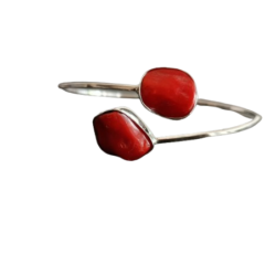 Bracciale in argento 925, con bagno galvanico di rodio bianco, con pietre sagomate naturali di corallo rosso di mm 13 e mm 11 circa , misura regolabile con apertura centrale a molla.