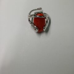 Anello in argento 925, realizzato con il metodo della cera persa, con bagno galvanico di rodio in oro bianco, con pietra naturale di corallo, misura regolabile dalla 13 alla 19.