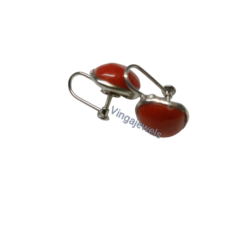 Orecchini Corallo Naturale con gancio a vite Americana pietre mm 13 circa,in Argento 925/1000 rodiato bianco