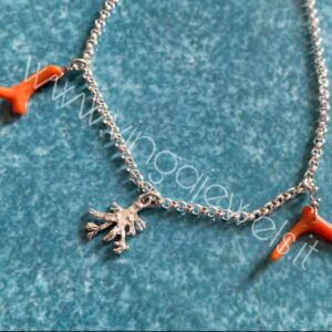 Cavigliera con motivi marini in argento 925 e bagno di rodio in oro bianco e corallo naturale