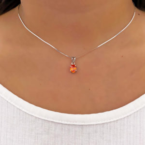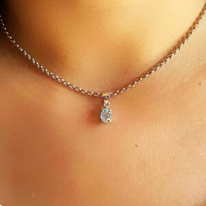 Collana con Ciondolo in argento 925, con bagno galvanico di rodio in oro bianco, con topazio azzurro 5×7 mm.