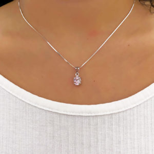 Collana con Ciondolo in argento 925, con bagno galvanico di rodio in oro bianco, con pietra rosa zirconia 6×8 mm