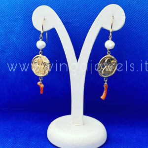 Orecchini “San Gennaro” in argento bagnato in #orogiallo , perline e corallo naturale.