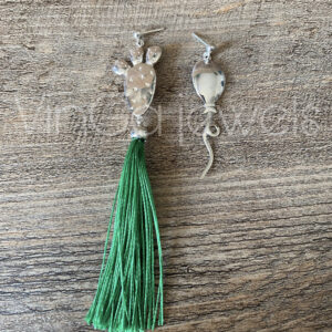 Una favola trasformata in gioiello: cactus e palloncino, meticolosamente realizzati a mano, in argento 925 e bagno di rodio in oro bianco, e nappina in tessuto verde!