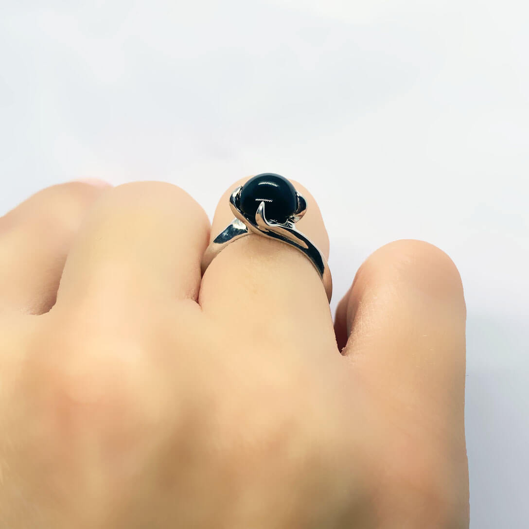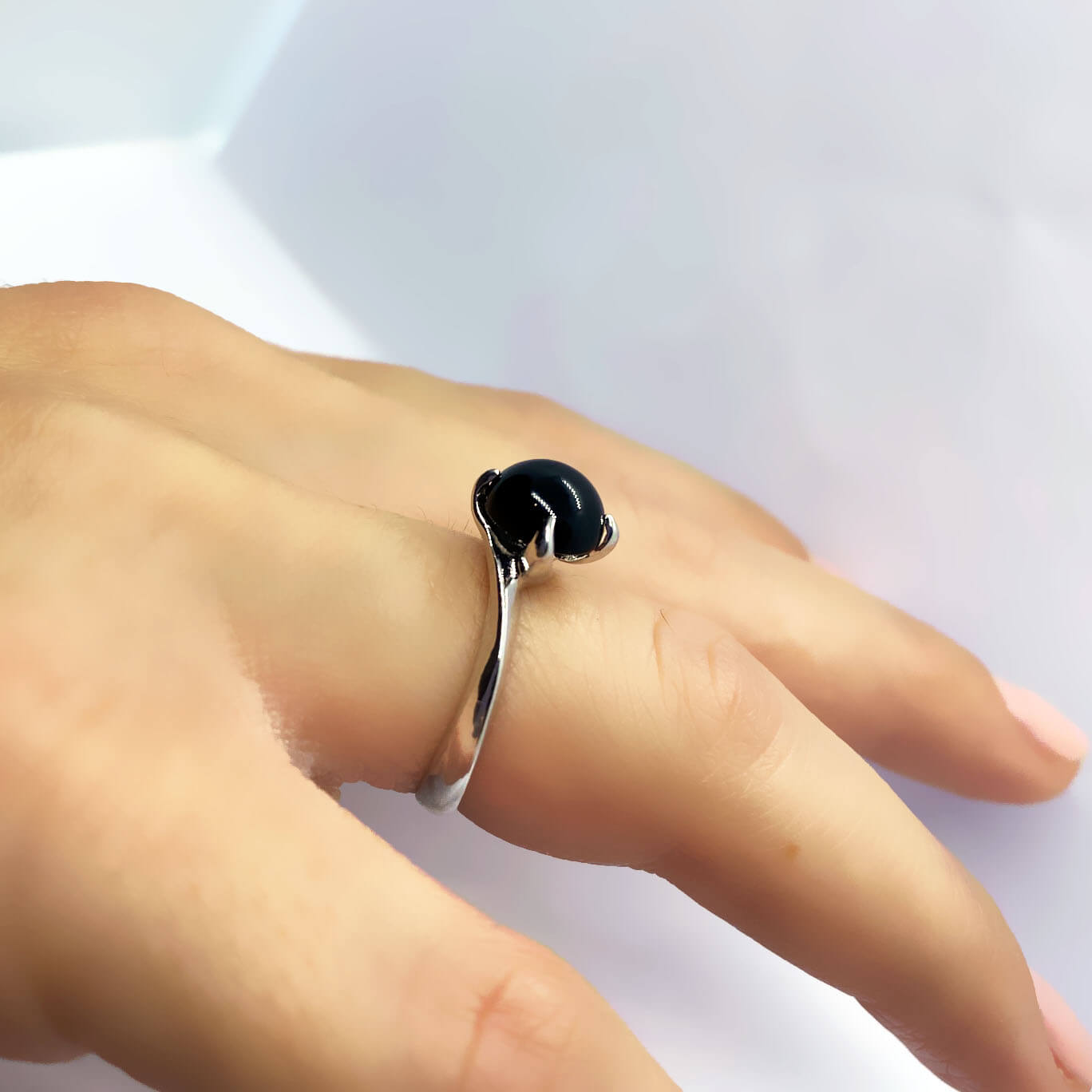 Anello Artiglio Nero in Argento 925, con bagno galvanico di rodio in oro bianco. Pietra di onice nero 8mm.