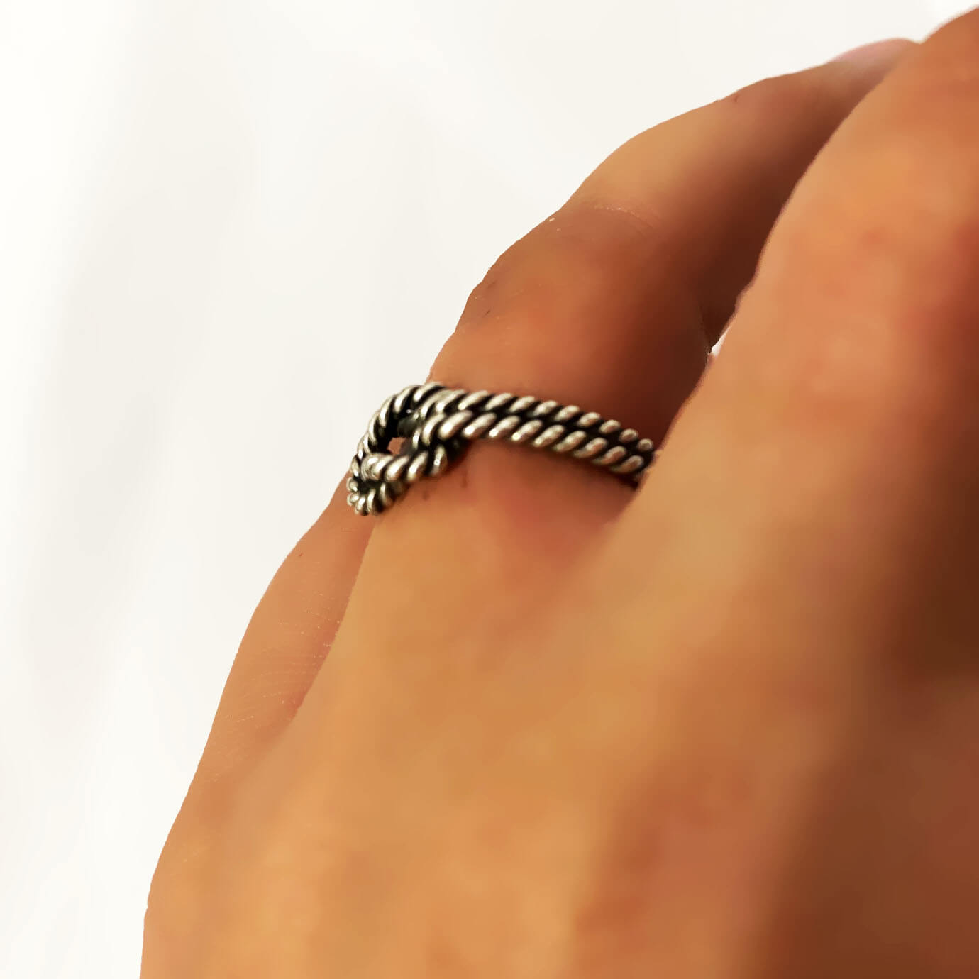Nodo “Piano” realizzato a mano sottoforma di anello in argento 925, ultimato con la tecnica della brunitura. Disponibile in tutte le misure, tempi di lavorazione 1-2 giorni lavorativi.