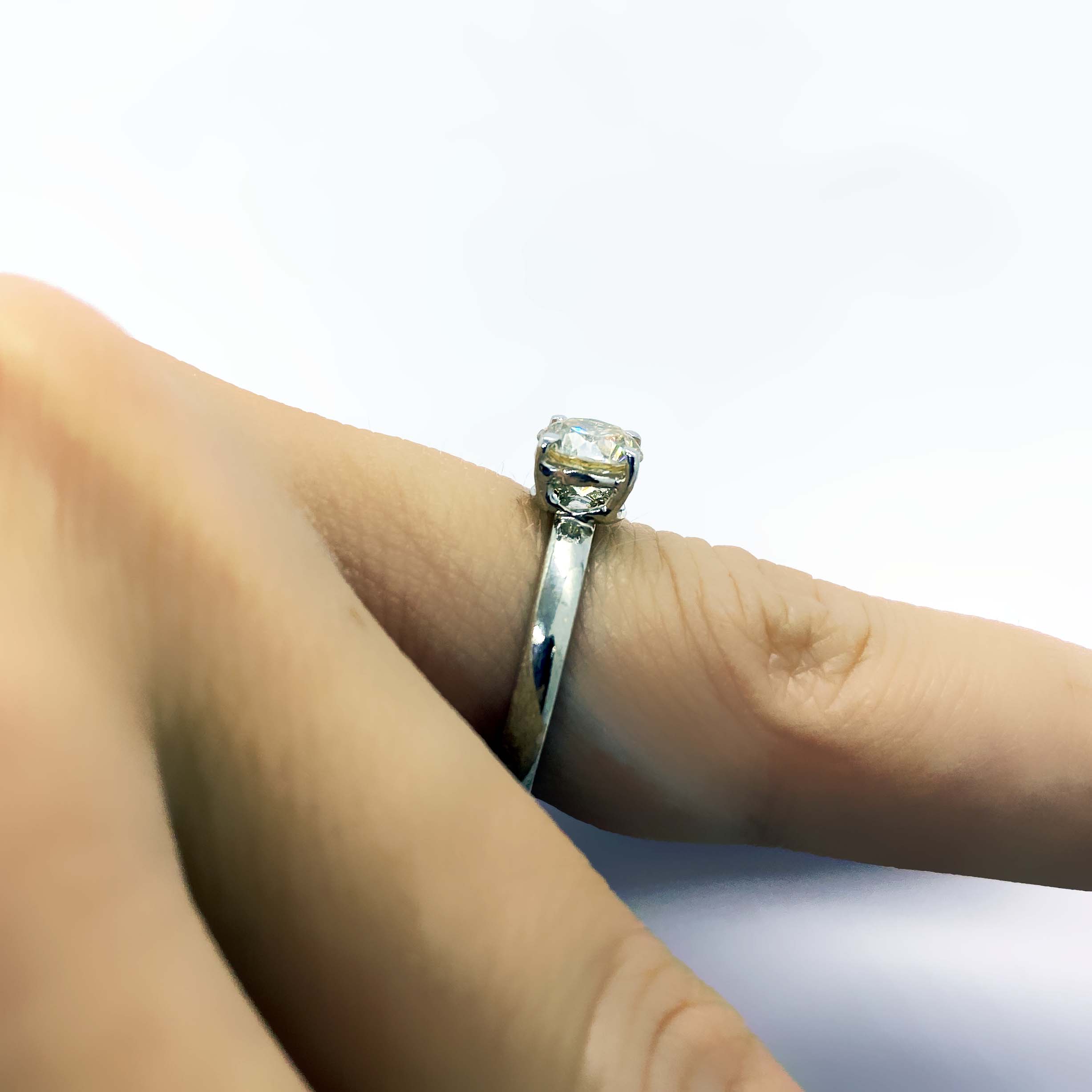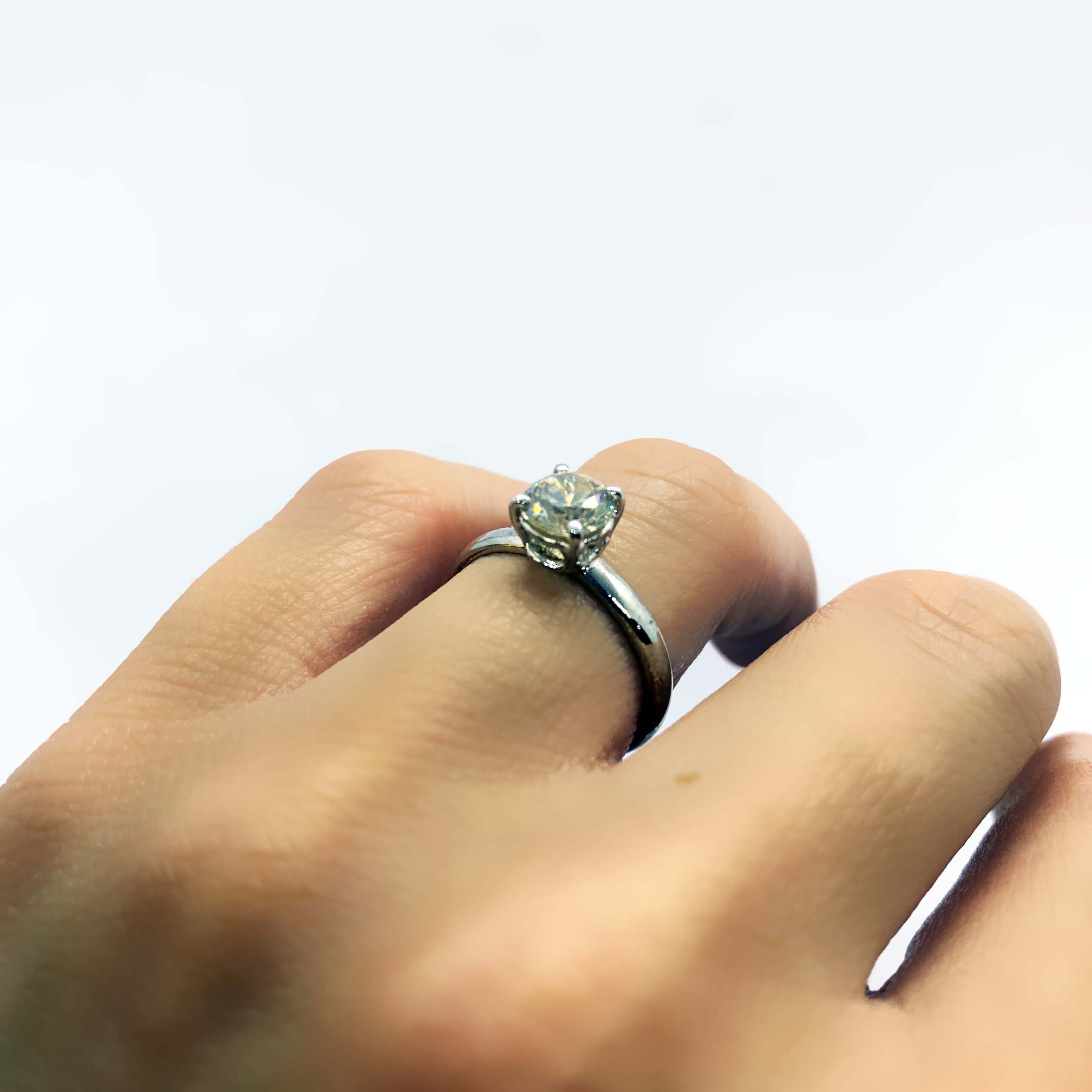 Anello solitario in argento 925, con bagno galvanico di rodio in oro bianco; con pietra zirconia bianca di 6 mm, misura 14,5 (disponibile, su richiesta, in tutte le misure)