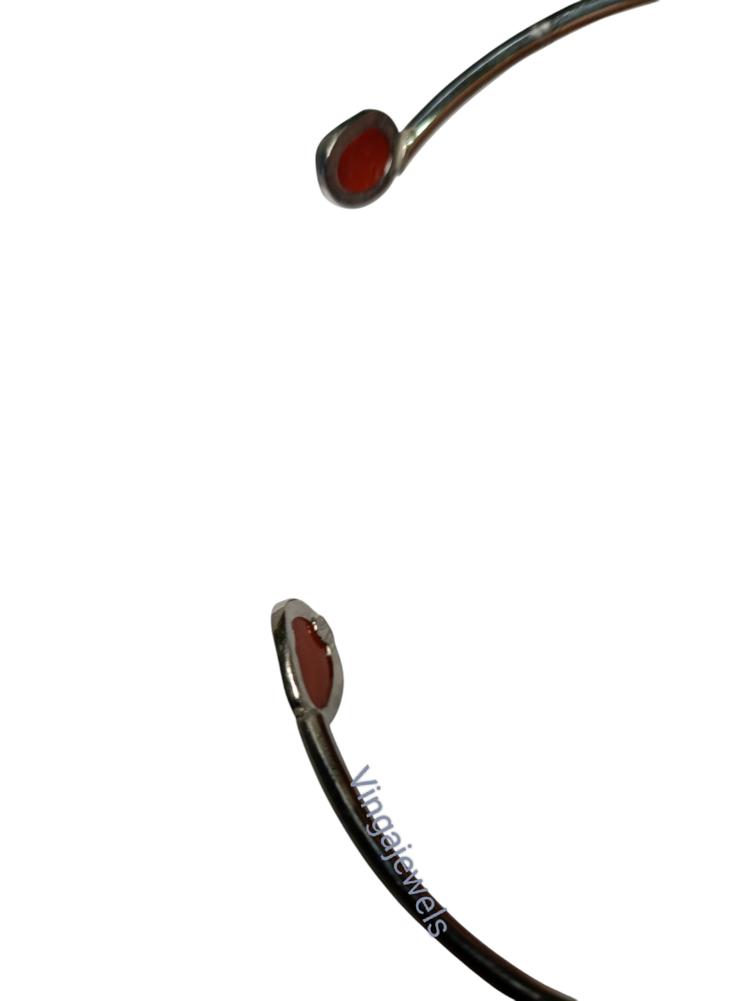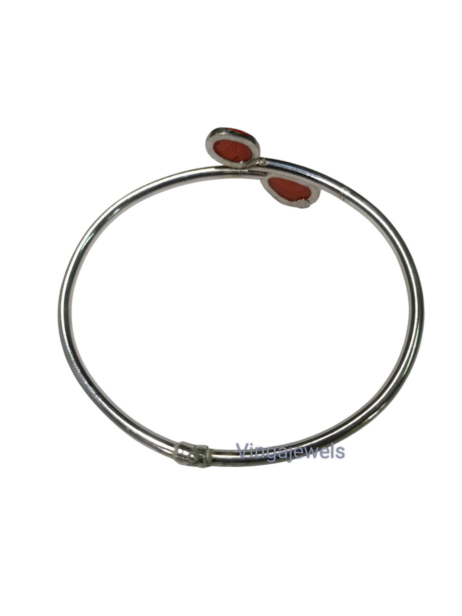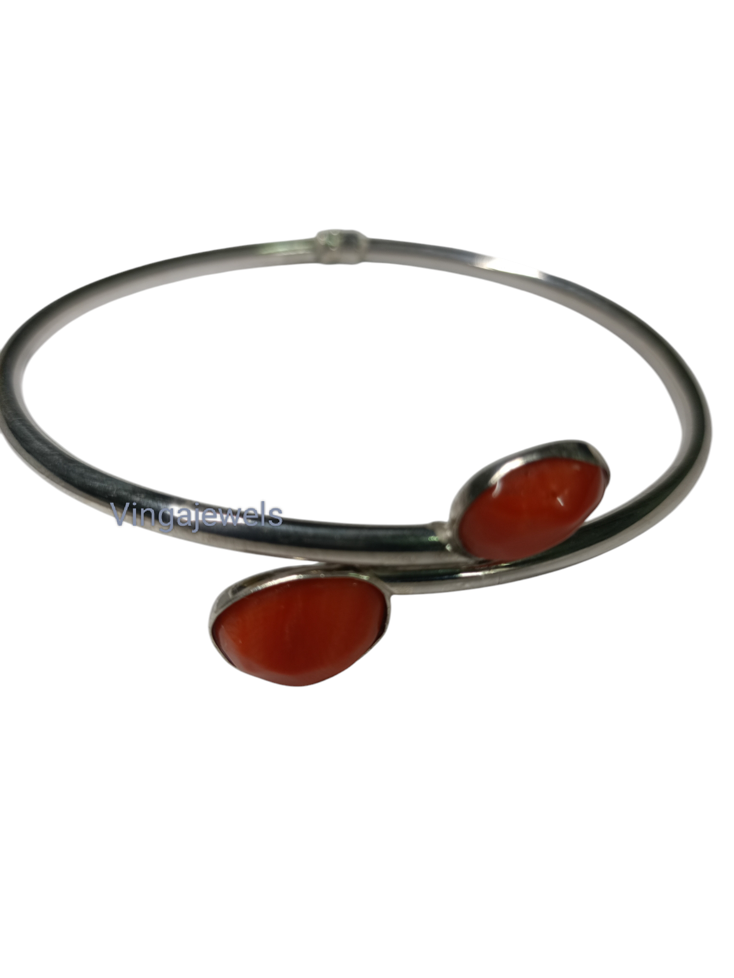 Bracciale in argento 925, con bagno galvanico di rodio bianco, con pietre sagomate naturali di corallo rosso di mm 13 e mm 11 circa , misura regolabile con apertura centrale a molla.