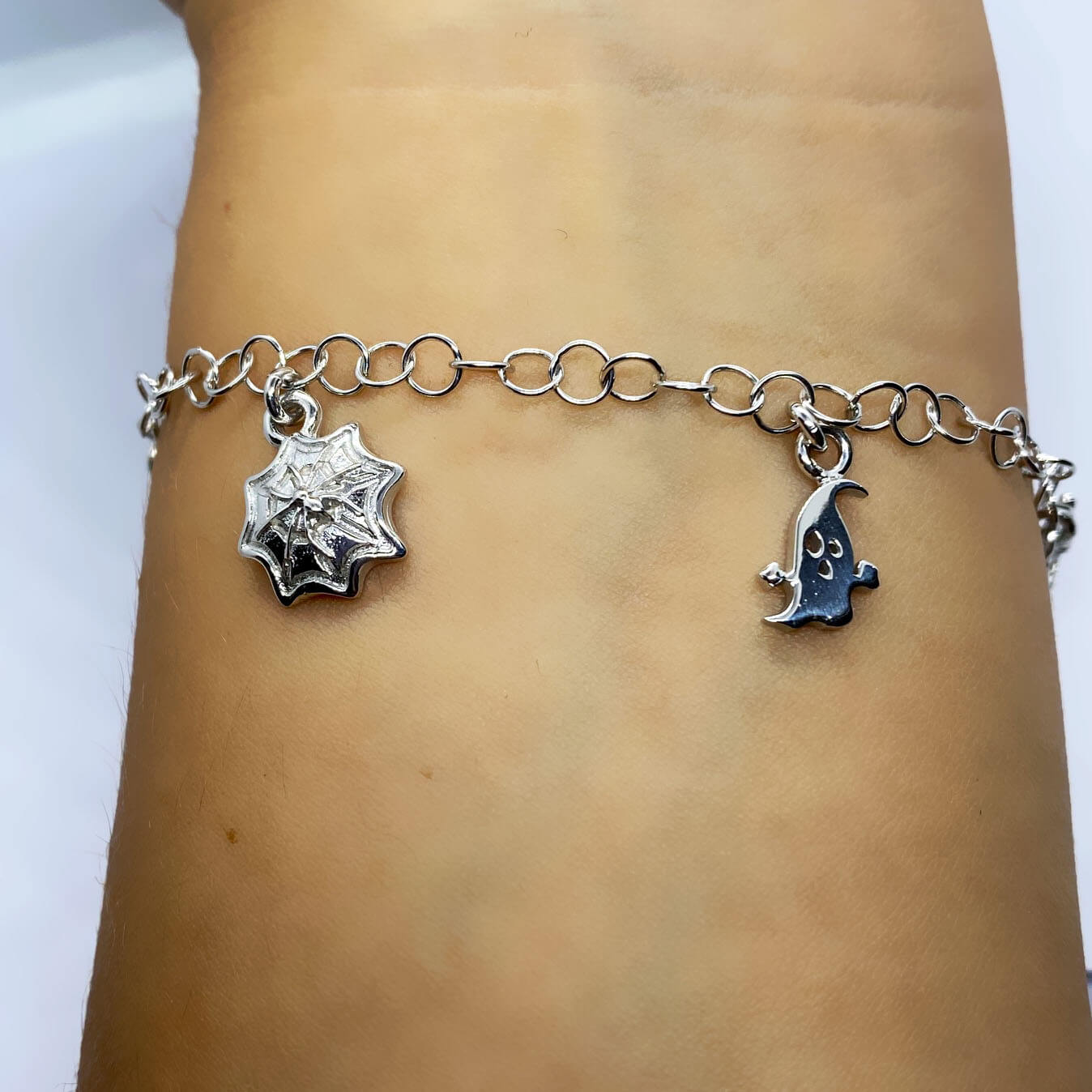 Bracciale Spooky e pendenti a tema in argento 925, con bagno galvanico di rodio in oro bianco