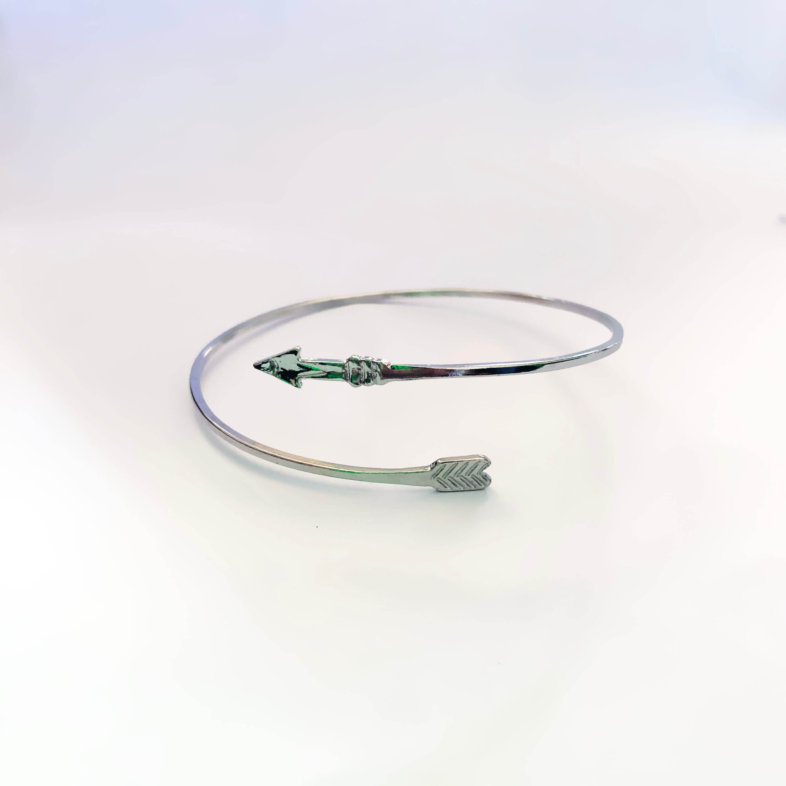 Bracciale rigido “freccia” in argento 925, con bagno galvanico di rodio in oro bianco, misura regolabile.