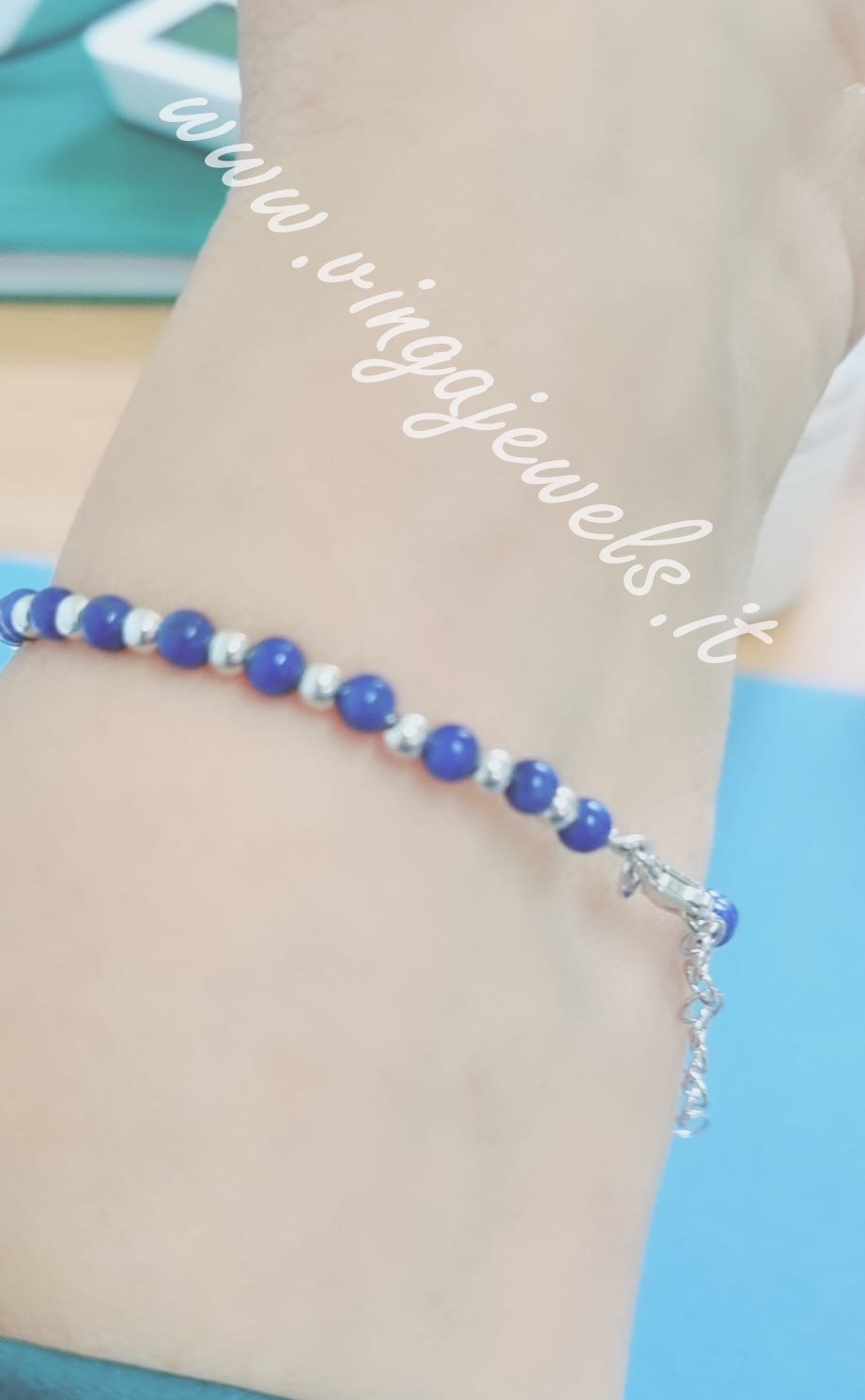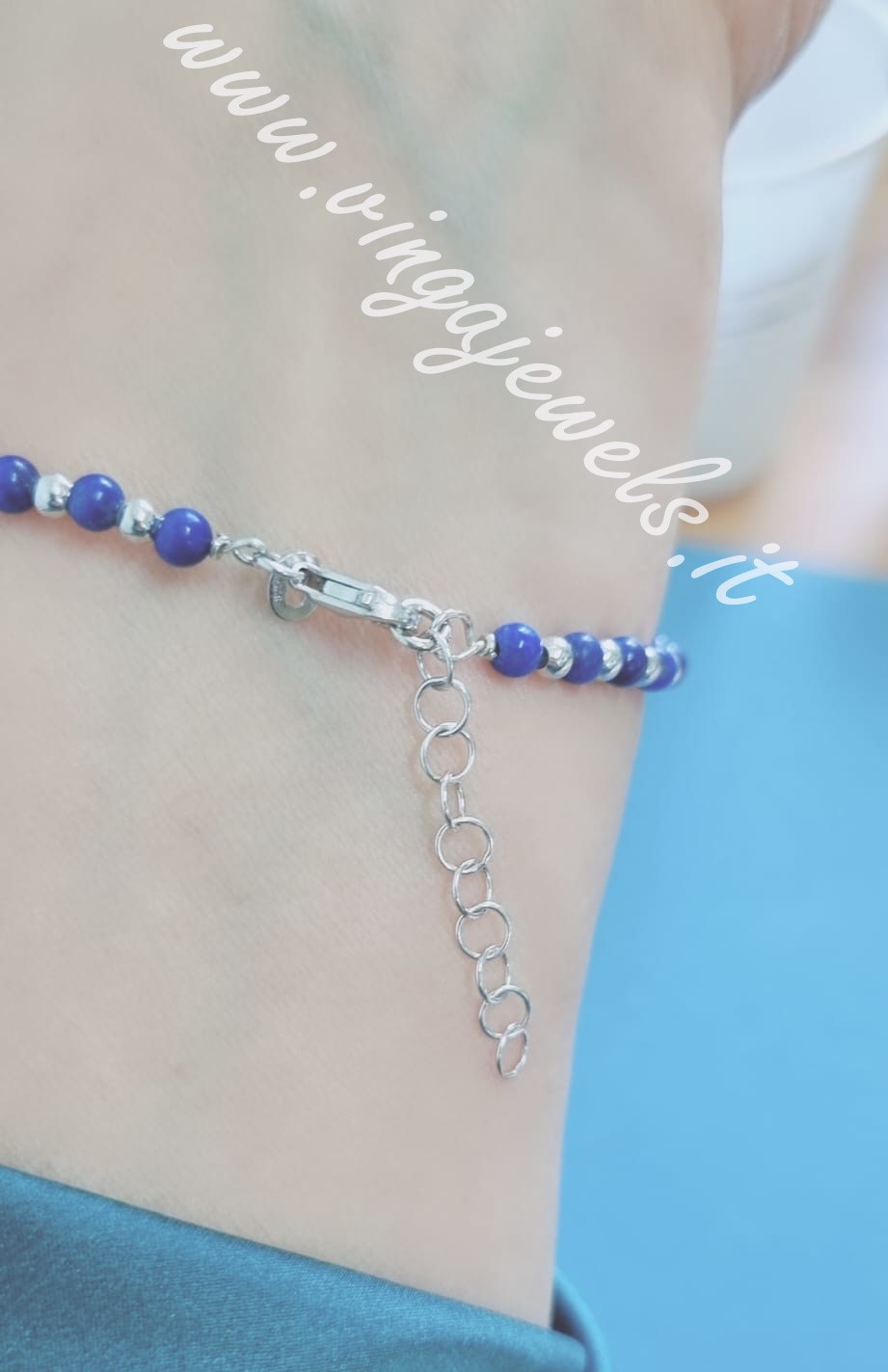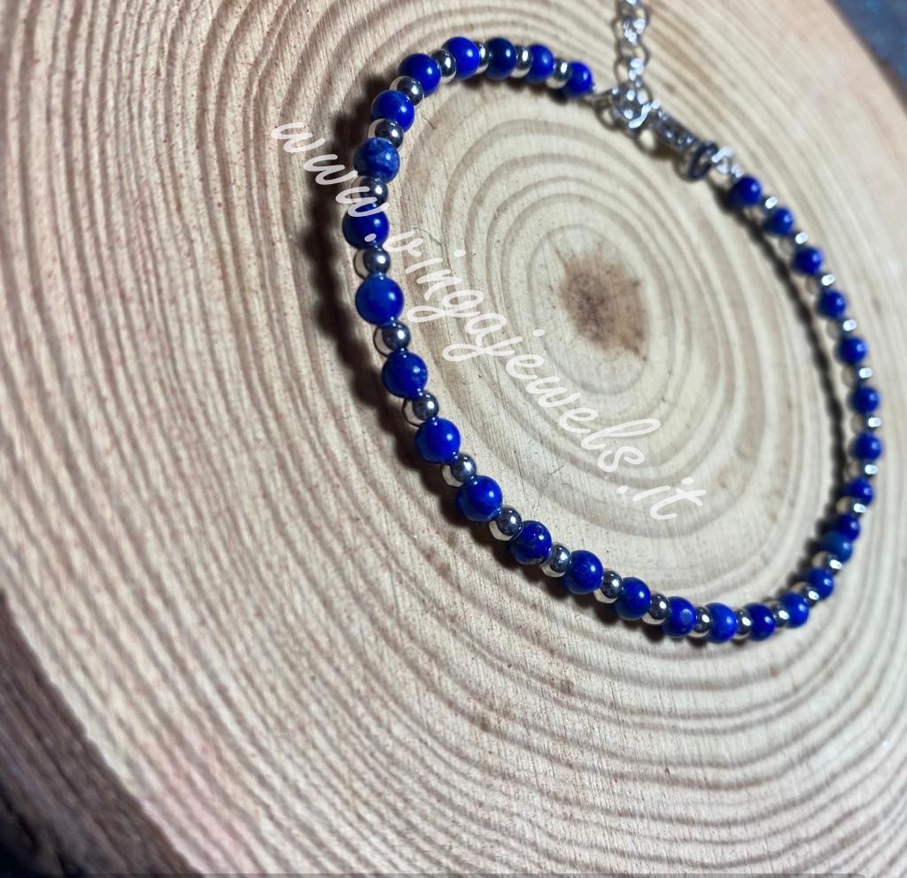 Bracciale con sfere alternate 4 mm Lapislazzuli Argento,anima interna bracciale totalmente in argento 925/1000 rodiato bianco misura interna 18 cm con catenaallungo circa 3 cm