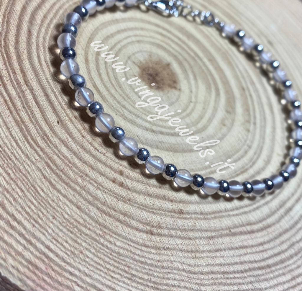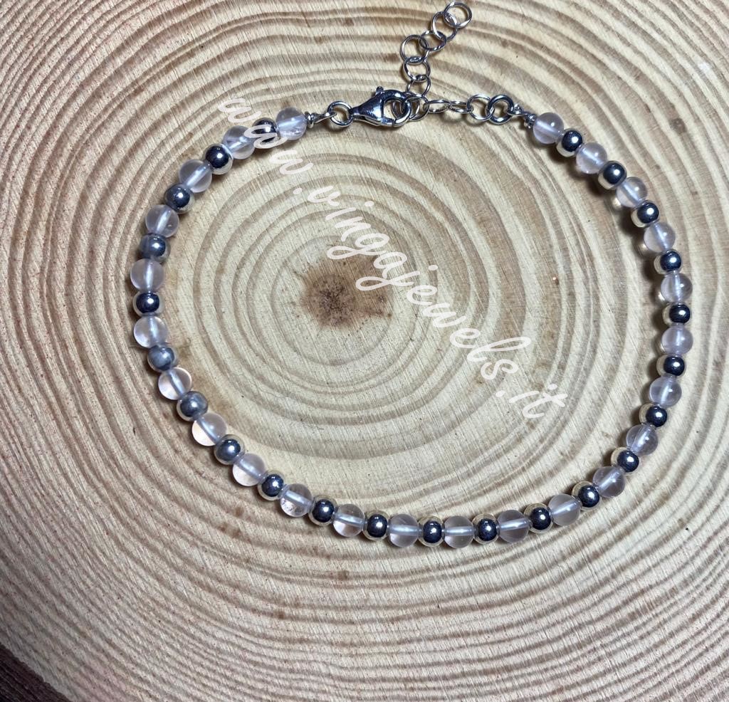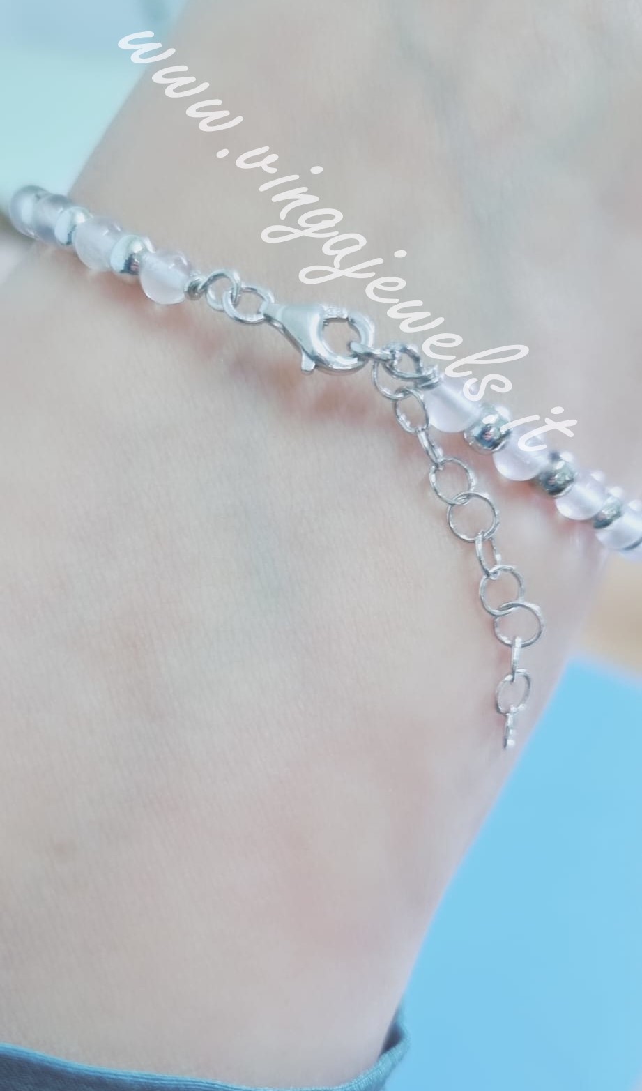Bracciale con sfere alternate 4 mm Quarzo Rosa Argento,anima interna bracciale totalmente in argento 925/1000 rodiato bianco misura interna 18 cm con catena allungo circa 3 cm