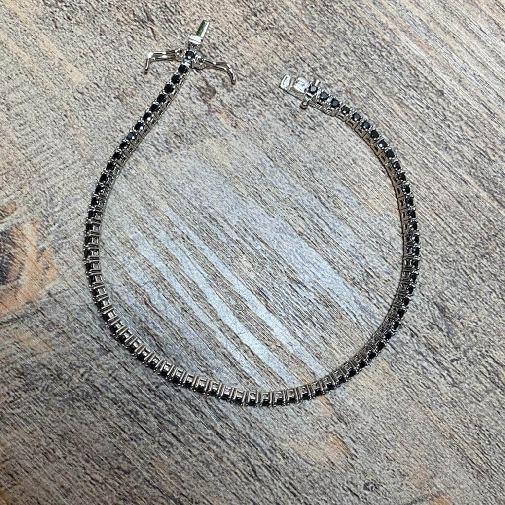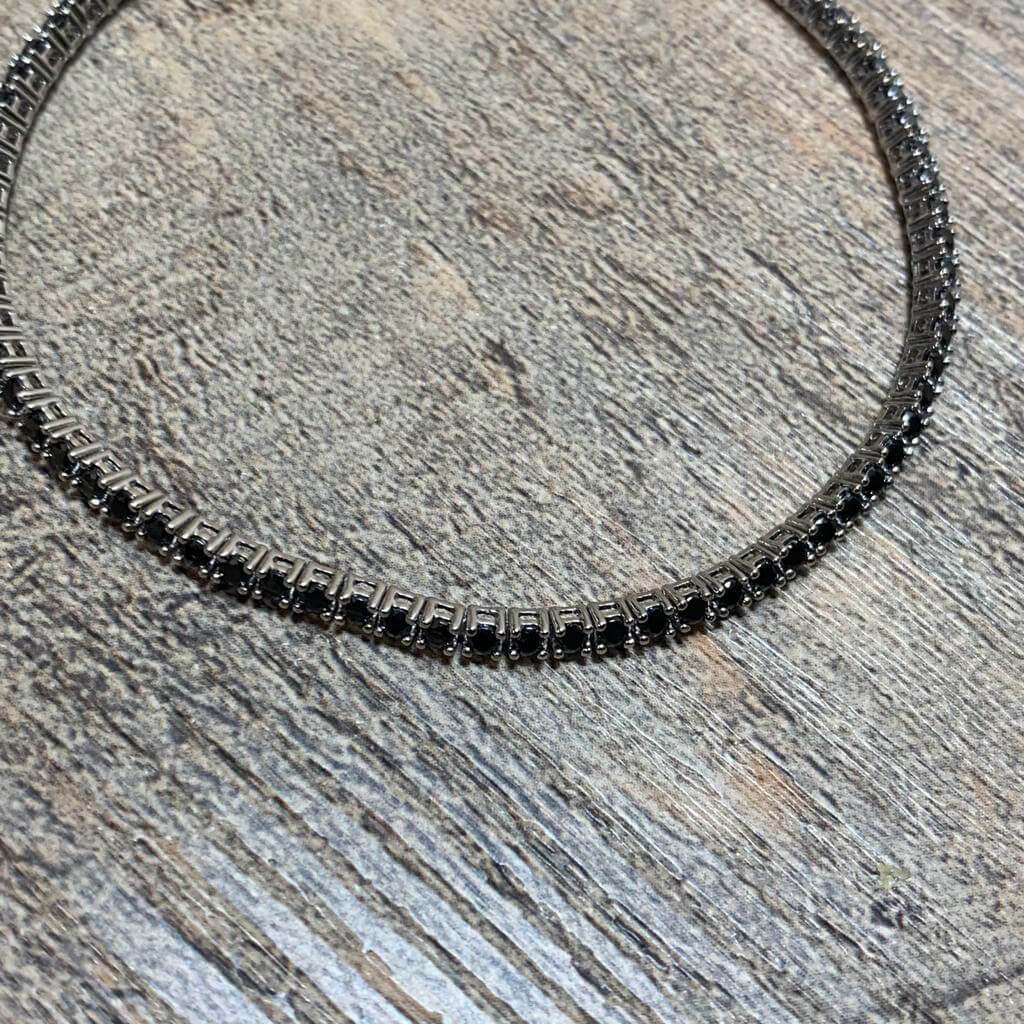 Bracciale Tennis in argento 925/1000 , con bagno di rodio bianco, pietre zirconia di colore nero mm 2 , lunghezza 20 cm circa chiusura a scatto e doppia sicurezza
