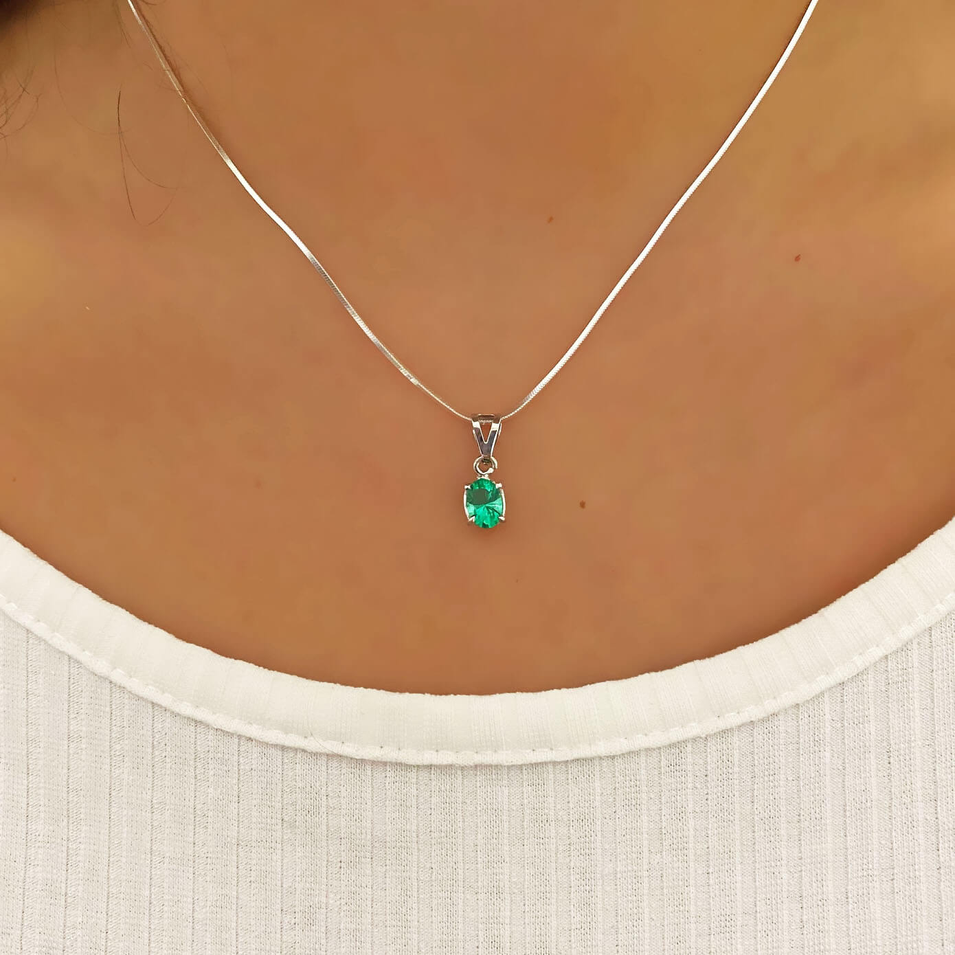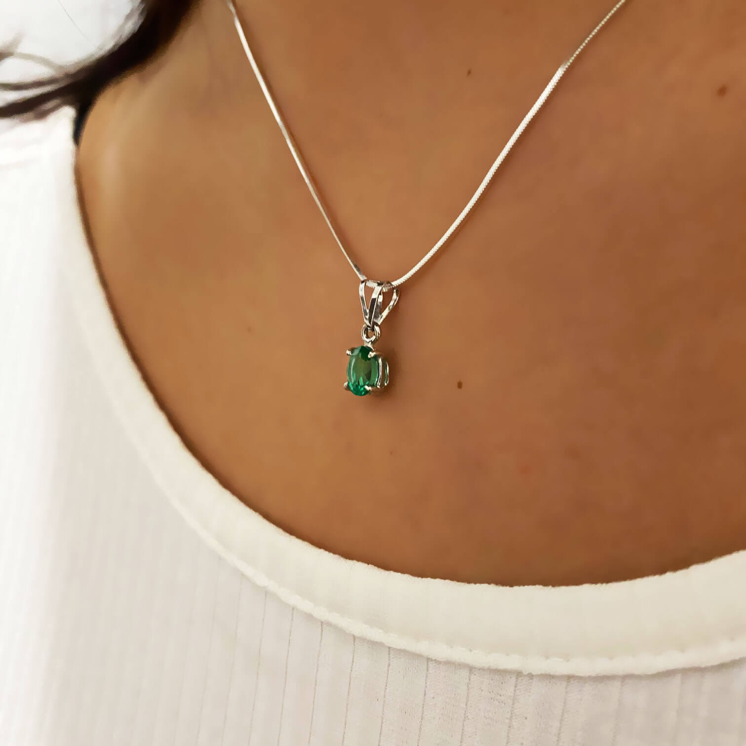 Ciondolo in argento 925, con bagno galvanico di rodio in oro bianco, con pietra smeraldo zirconia.