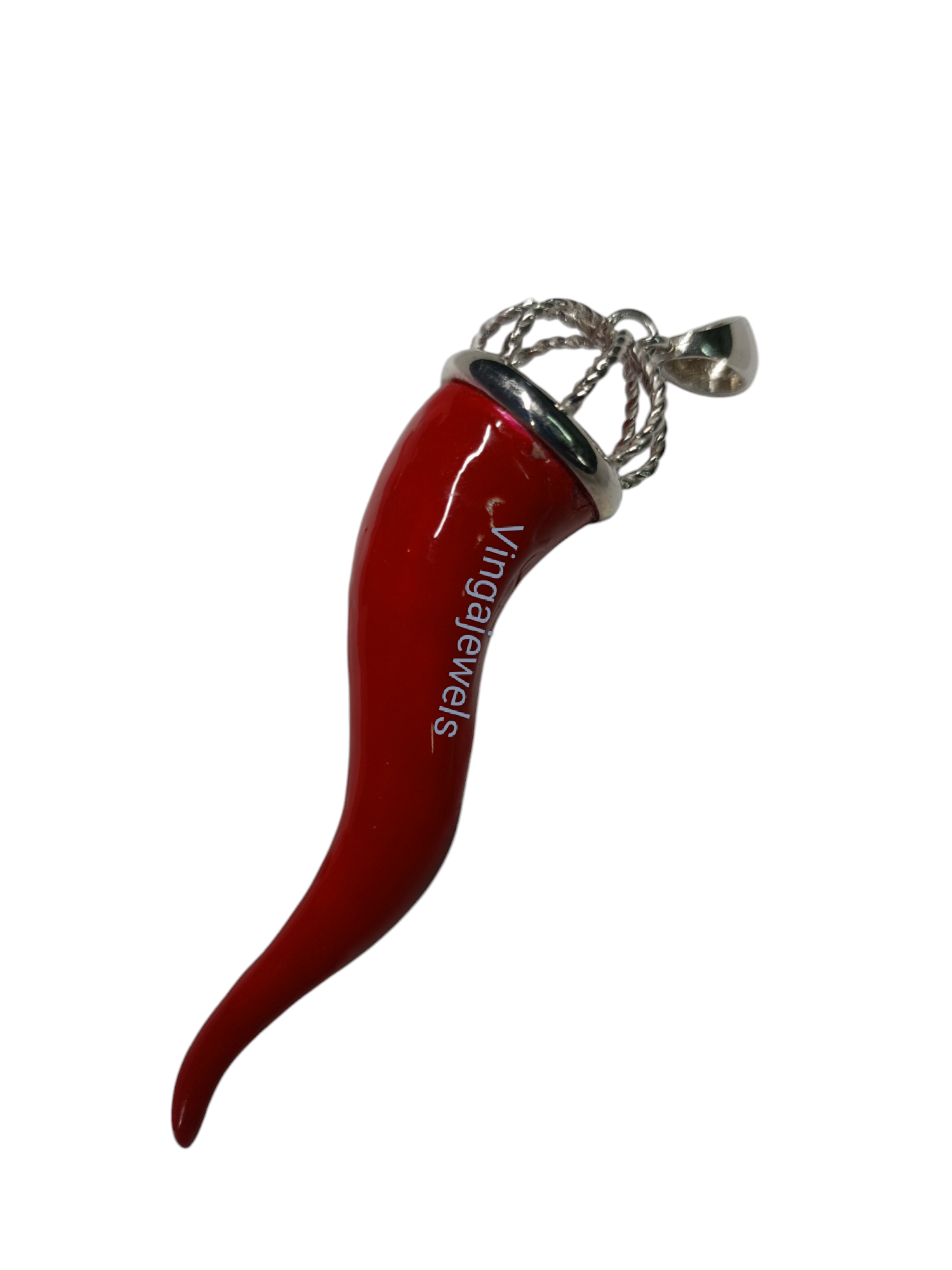 Corno Portafortuna Argento 925/1000 rodio bianco con gancio bombato.