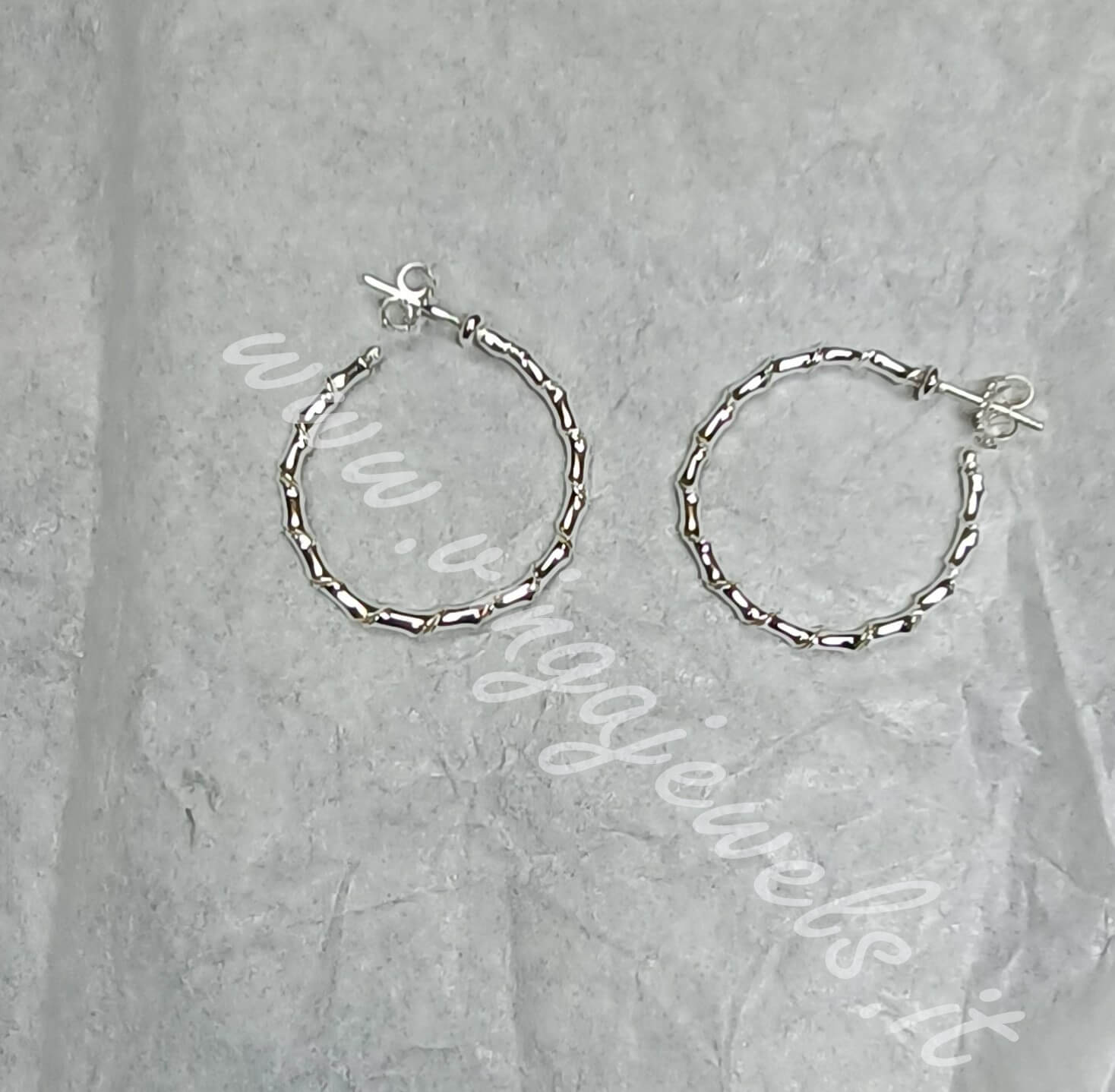 Orecchini Cerchi Bambù in Argento 925/1000 e Rodio Bianco