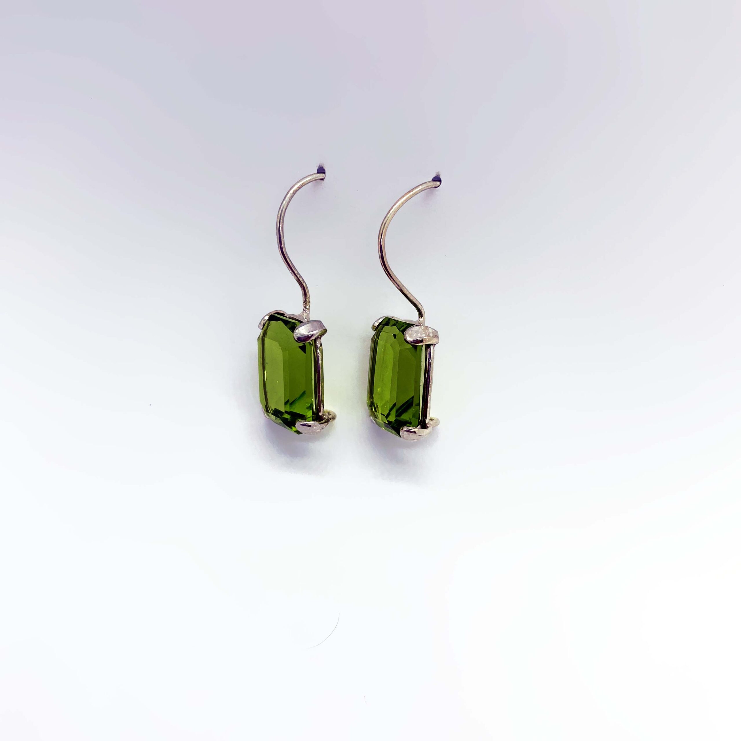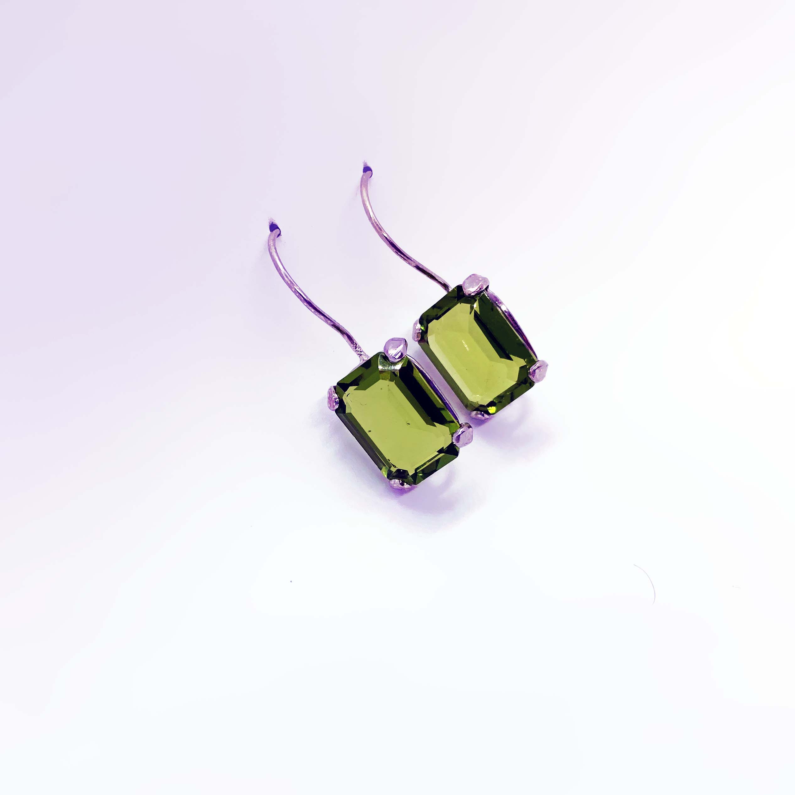 Orecchini in argento 925 in stile “Pompeiana”,con bagno galvanico di rodio in oro bianco , con pietra zirconia Smeraldo 14x10mm.