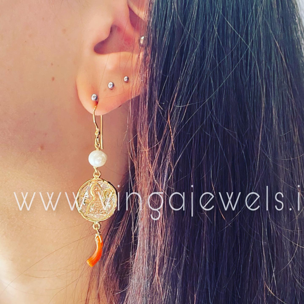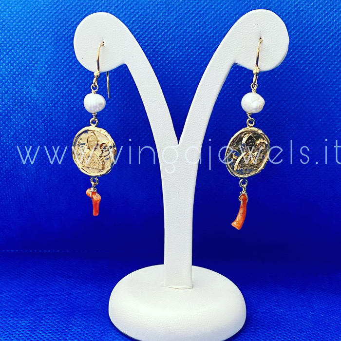 Orecchini βSan Gennaroβ in argento bagnato in #orogiallo , perline e corallo naturale.