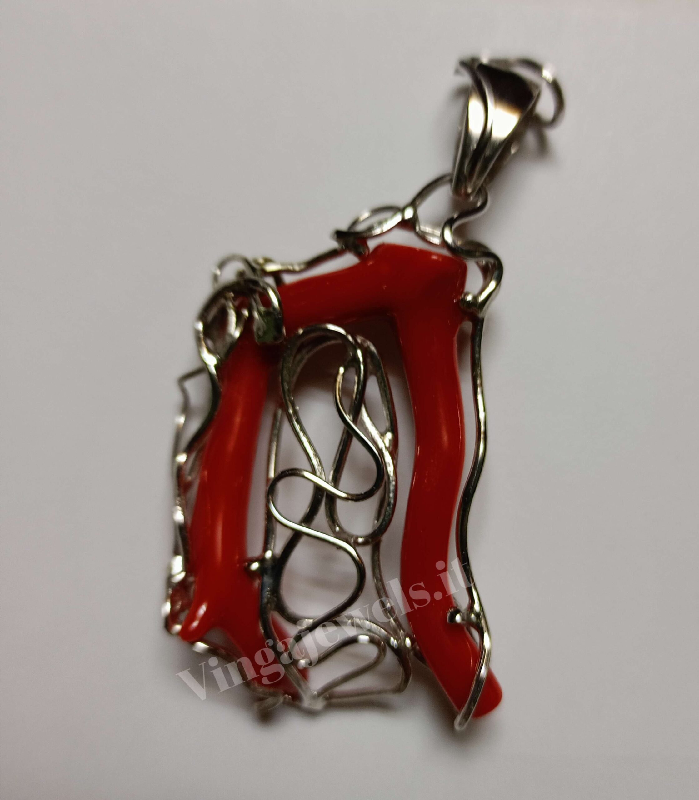 Ramo in Corallo Autentico con montatura in Argento rodiato 925/1000 il ramo con la montatura è di circa cm 6×5